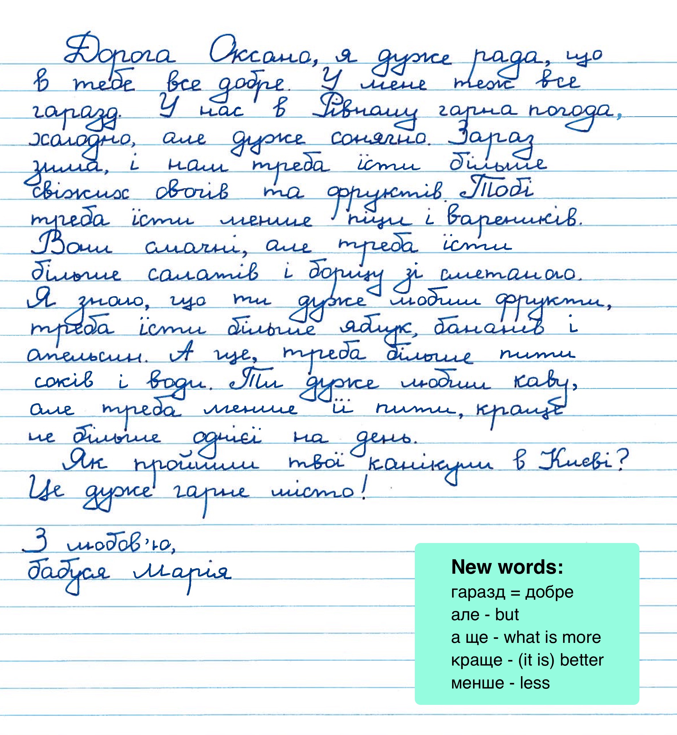 Following Oksana’s example, advise your friend on healthy eating habits.