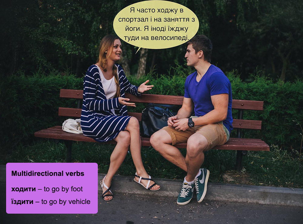 - multidirectional verbs of motion in the present tense (ходити, їздити)